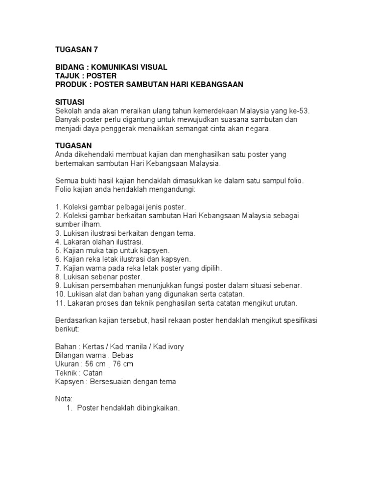 Menggambar Tahun 3 Poster Merdeka Pdf